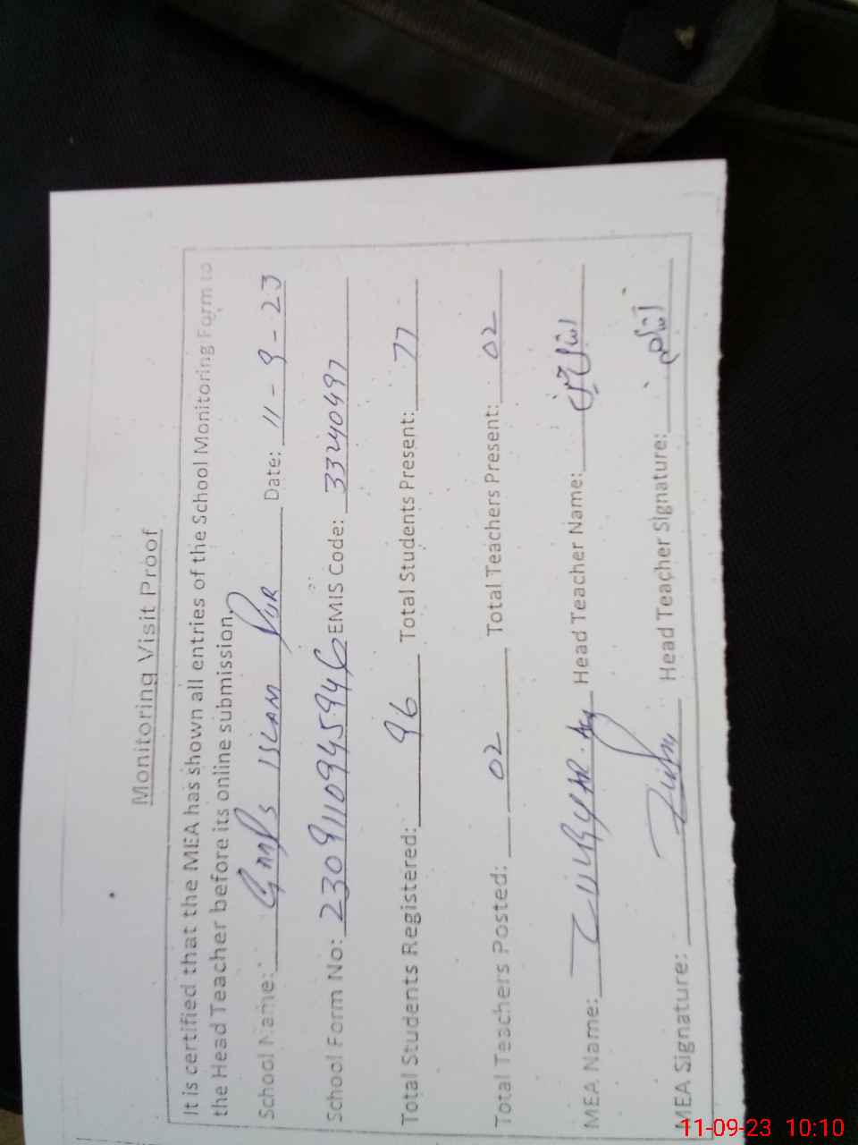 | Name: IQ**** HU**** Designation: (School Headmaster's/Headmistress's) PST Phone/Cell Number: 03**** |