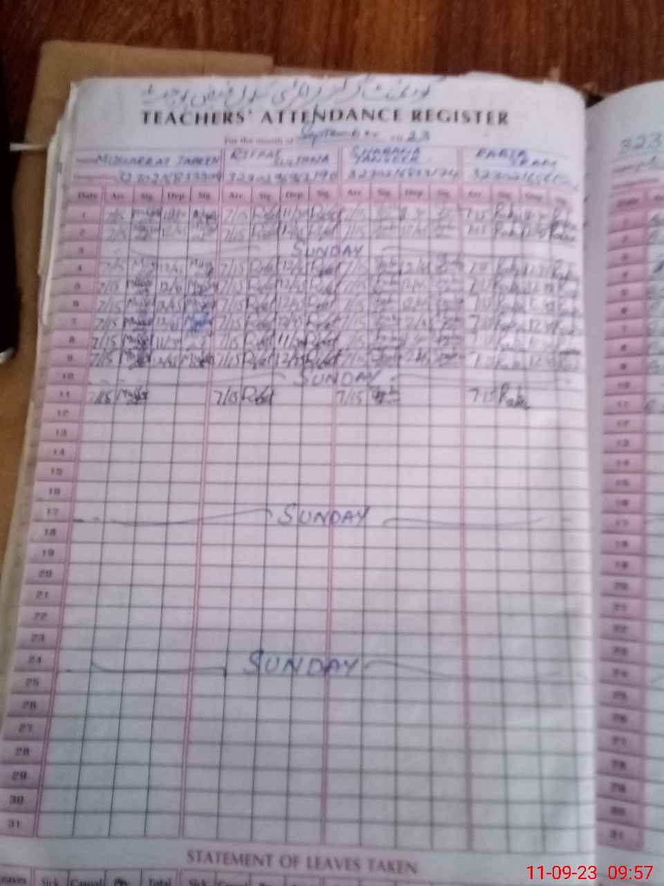 | Leave | Duty | Absent | Maternity | Medical | Ex- Pak |