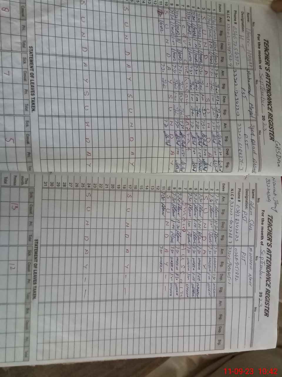 | Name: Um**** Ha**** Designation: (School Headmaster's/Headmistress's) PST Phone/Cell Number: 03**** |
