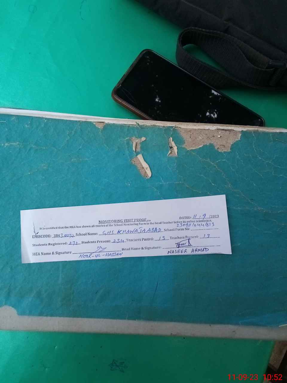 | EMIS Code: 38430032 | Name of School: GHS KHAWAJA ABAD | |||