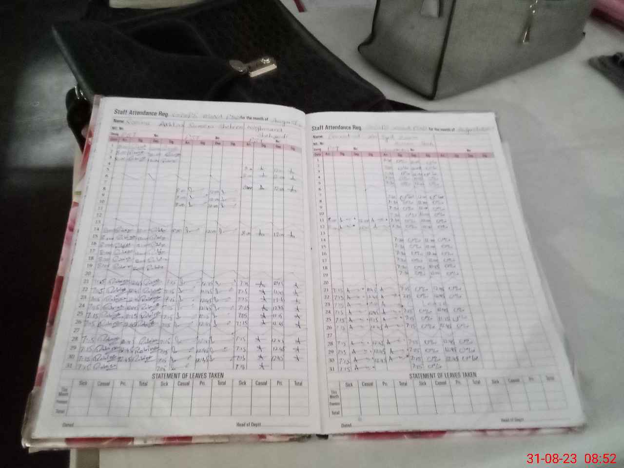 | Leave | Duty | Absent | Maternity | Medical | Ex- Pak |