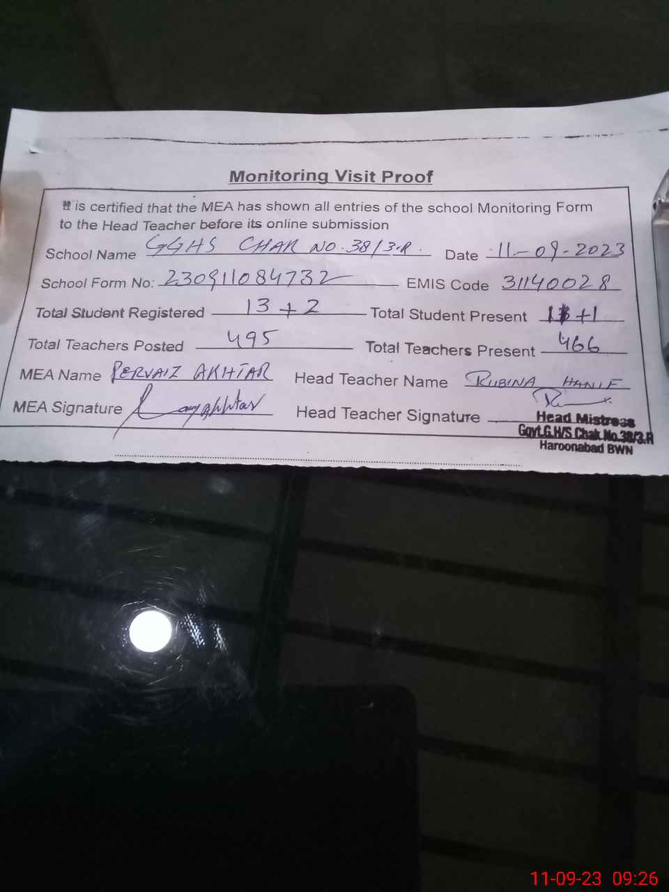 | EMIS Code: 31140028 | Name of School: GGHS CHAK NO.38/3-R | |||