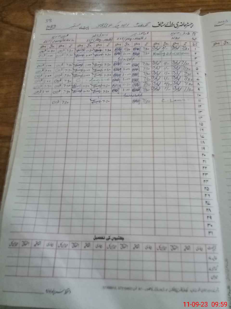| CNIC | Full Name | Designation | R/C | Absence During Last Calender Month |