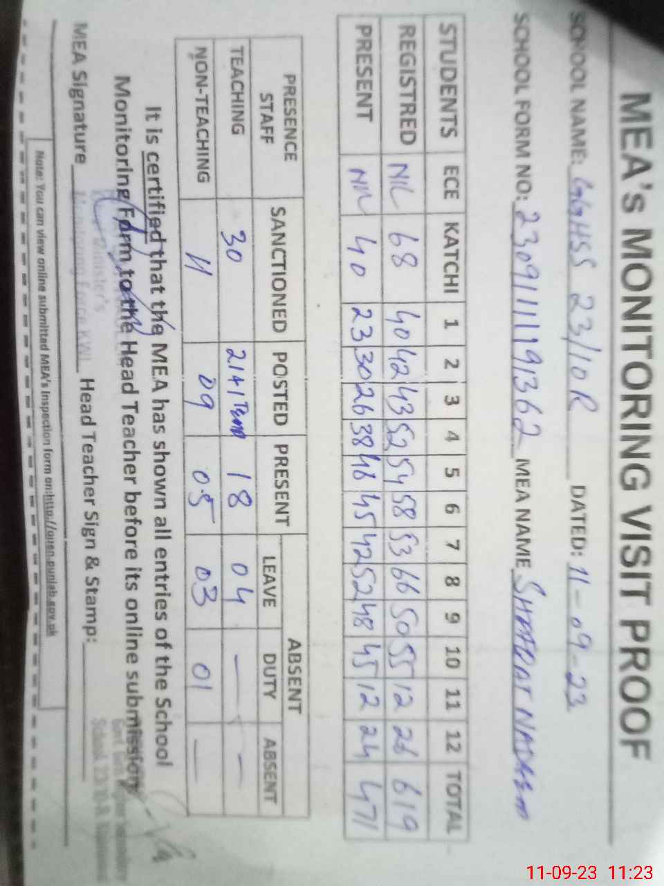 | EMIS Code: 36420050 | Name of School: GGHSS 23/10-R, KACHA KHUH | |||