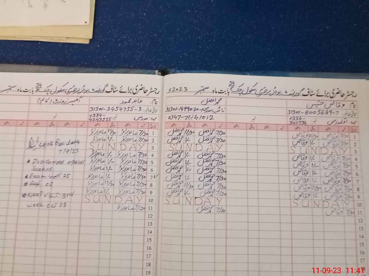 | Name: Wa**** Hu**** Designation: (School Headmaster's/Headmistress's) Head Teacher Phone/Cell Number: 03**** |