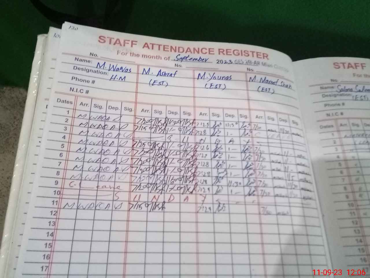 | Name: Mu**** Wa**** Designation: (School Headmaster's/Headmistress's) SST. CS Phone/Cell Number: 03**** |