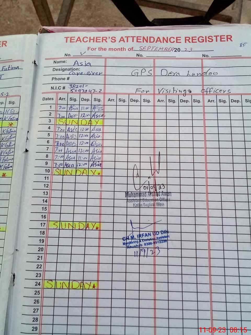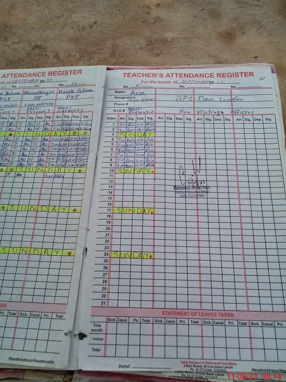 | Name: MU**** Ak**** Designation: (School Headmaster's/Headmistress's) PST Phone/Cell Number: 03**** |