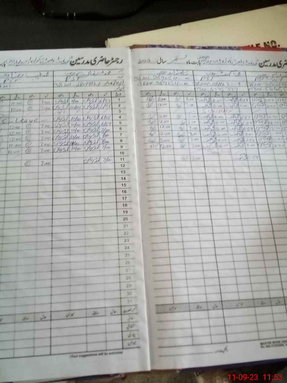 | CNIC | Full Name | Designation | R/C | Absence During Last Calender Month |