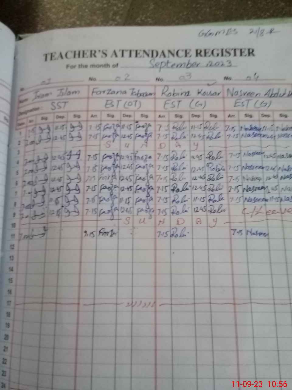 | Remarks (Use Separate Page if Required): Following teachers are posted in this school but yet not added in PMIU teachers list Robina Kousar EST Nasreen Abdul Haq EST Total teachers strength is 12 | |||||