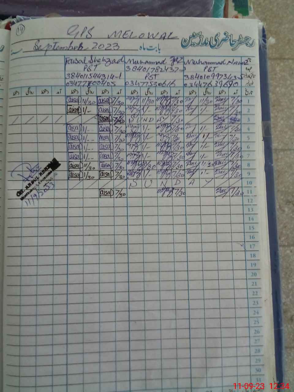 | Name: MU**** NA**** Designation: (School Headmaster's/Headmistress's) PST Phone/Cell Number: 03**** |