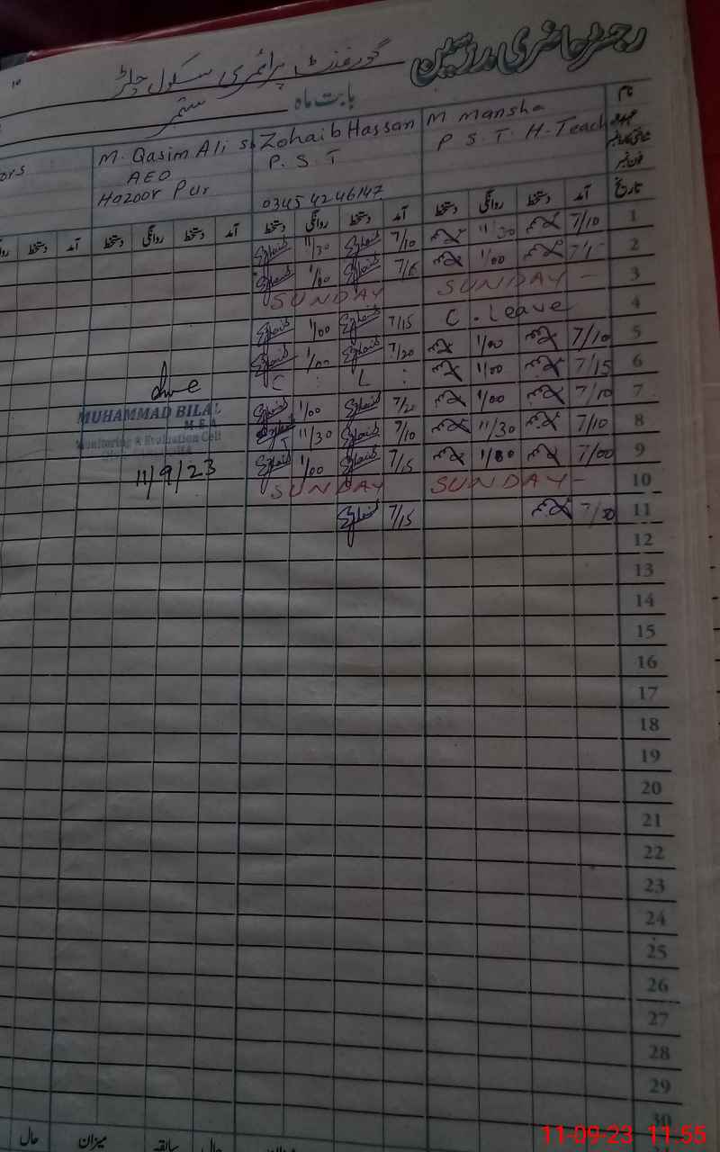 | District: SARGODHA | Tehsil: BHERA | Markaz: HAZOOR PUR - MALE | Level: Primary | |