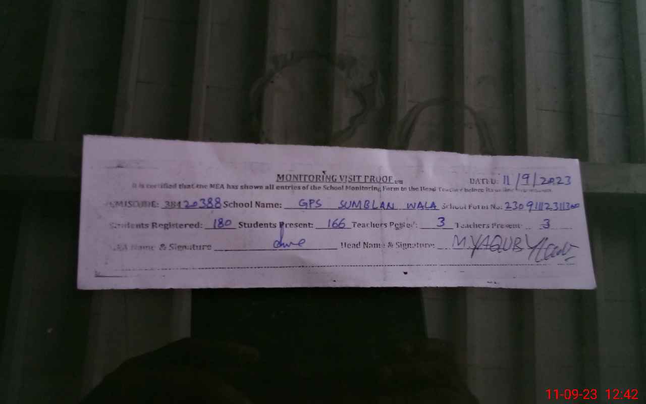 | EMIS Code: 38470388 | Name of School: GPS SUMBLAN WALA | |||