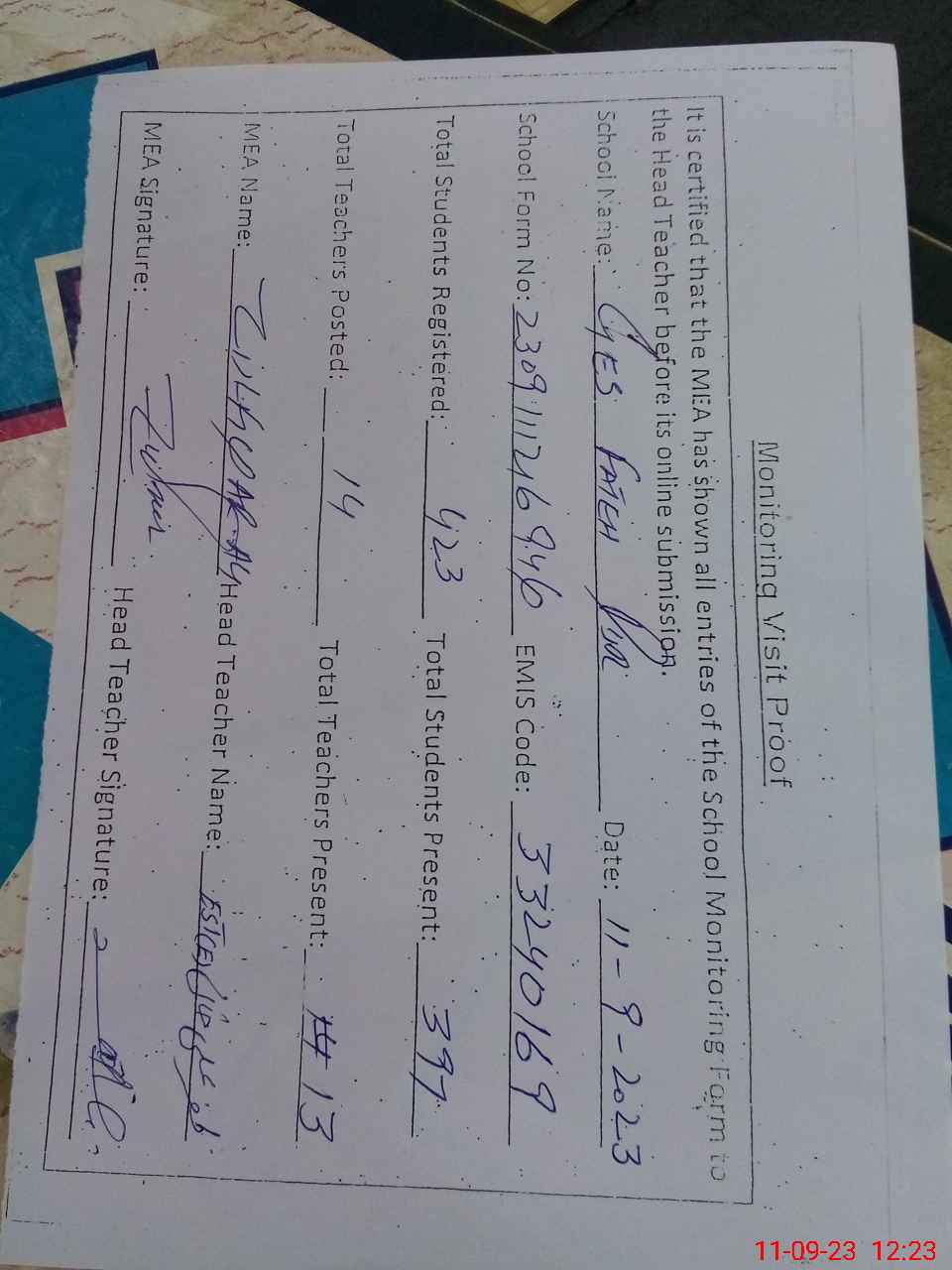 | EMIS Code: 33240169 | Name of School: GES FATEH PUR PARITY | |||