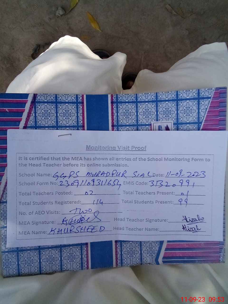 | EMIS Code: 31320991 | Name of School: GGPS MURAD PUR SIAL | |||