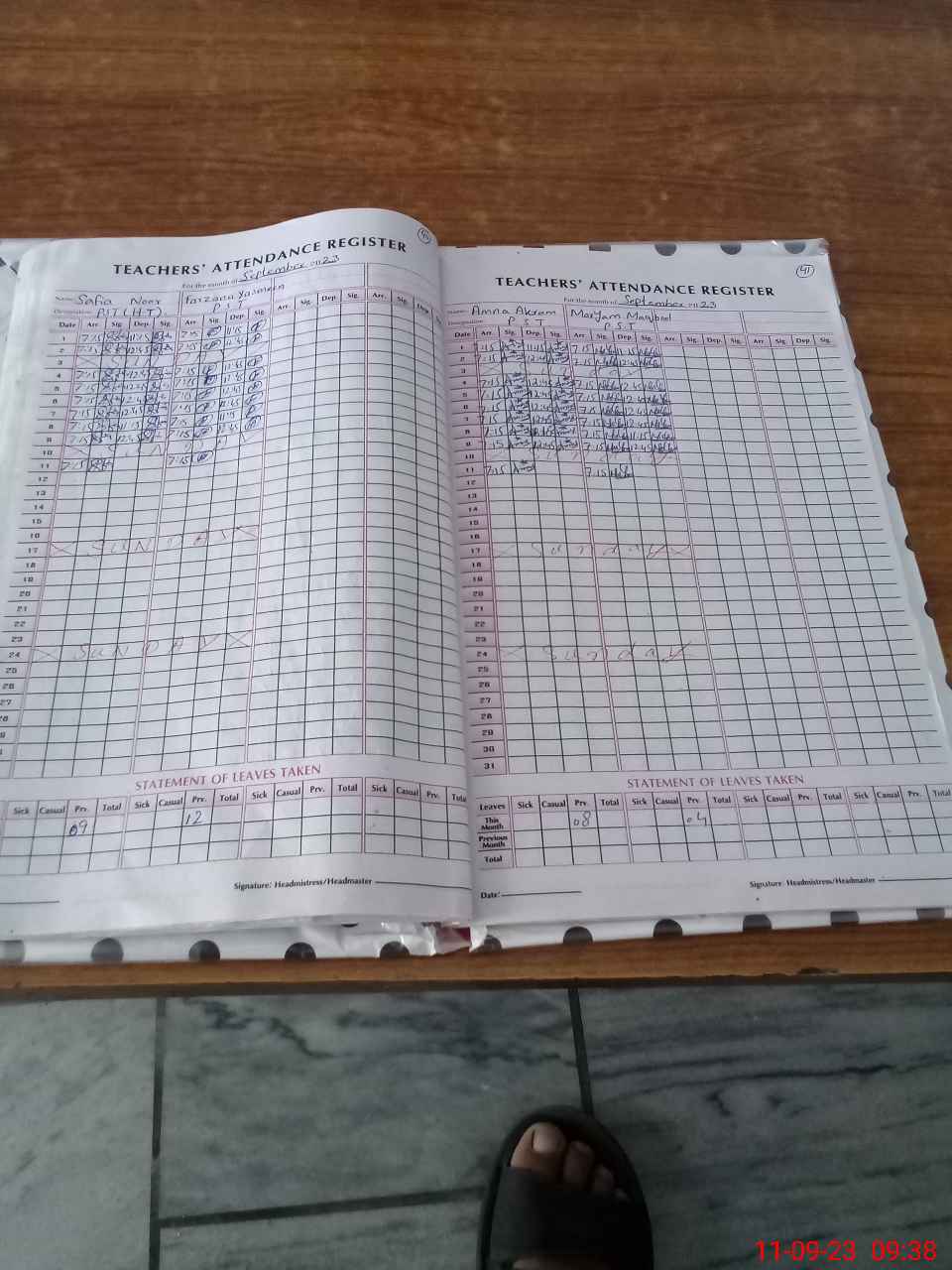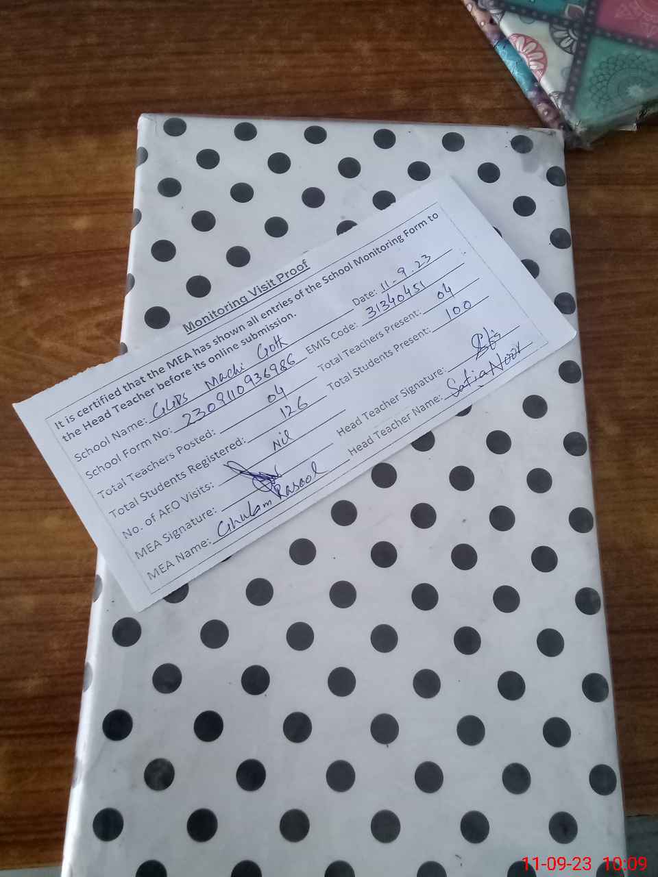| Attendance Register | Head Teacher | MEA with School | Visit Proof |