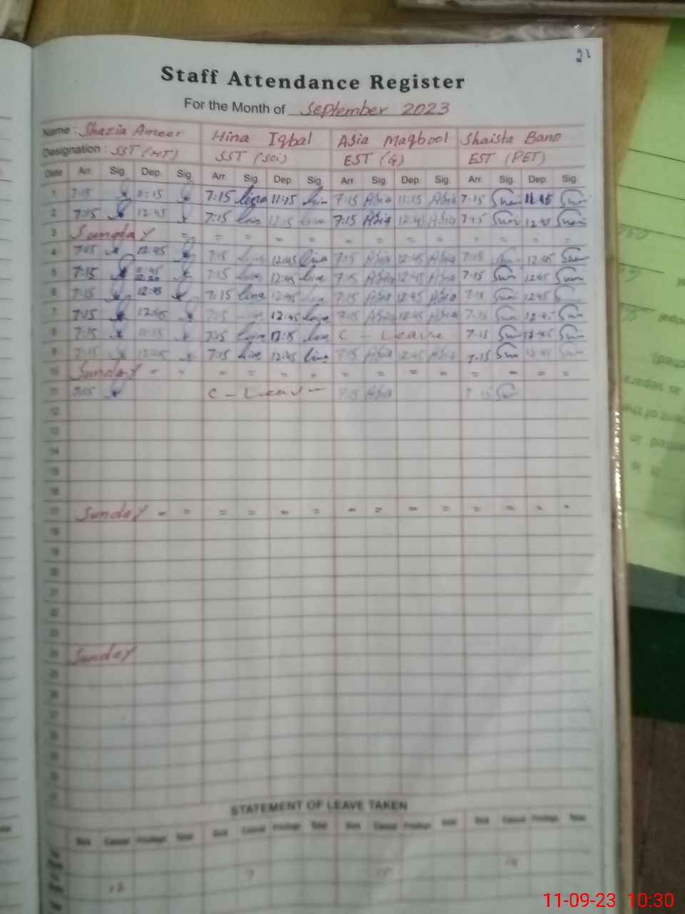 | Leave | Duty | Absent | Maternity | Medical | Ex- Pak |