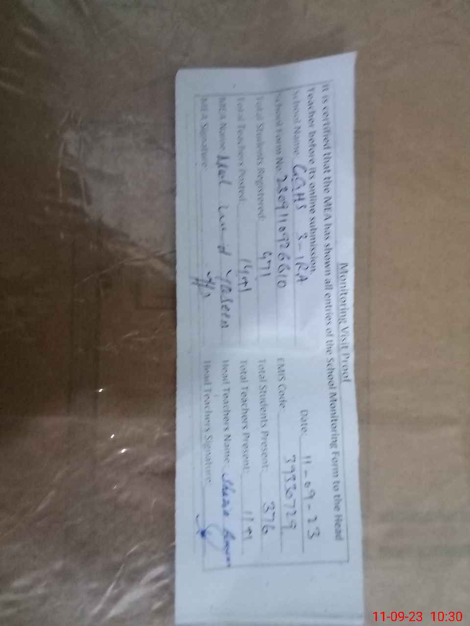 | Name: Hi**** Iq**** Designation: (School Headmaster's/Headmistress's) S.S.T. Sci Phone/Cell Number: 03**** |