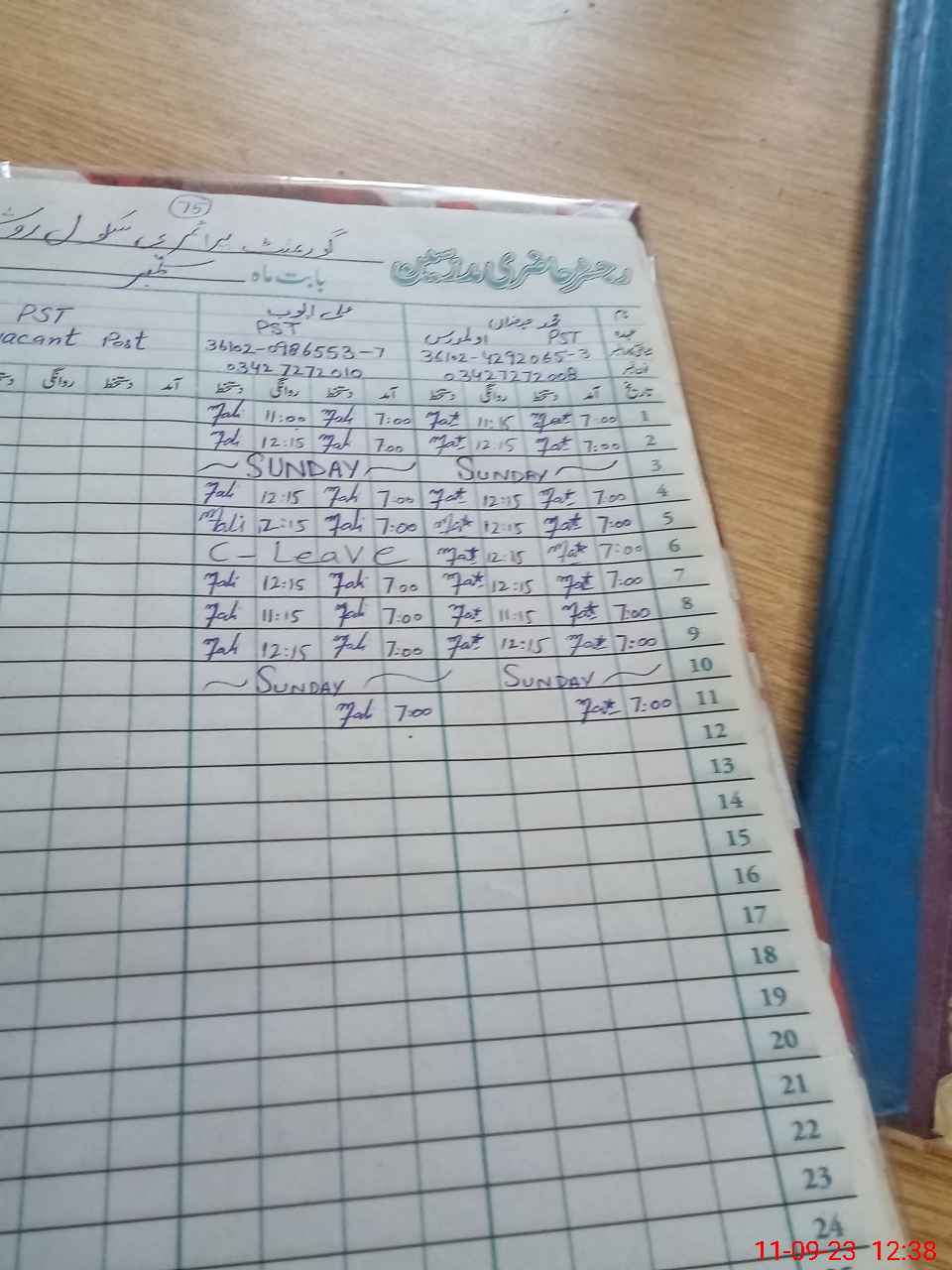 | CNIC | Full Name | Designation | R/C | Absence During Last Calender Month |