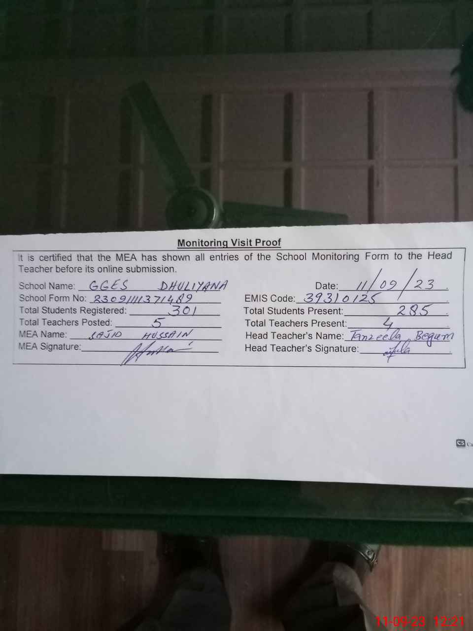| EMIS Code: 39310125 | Name of School: GGES DHULIANA | |||