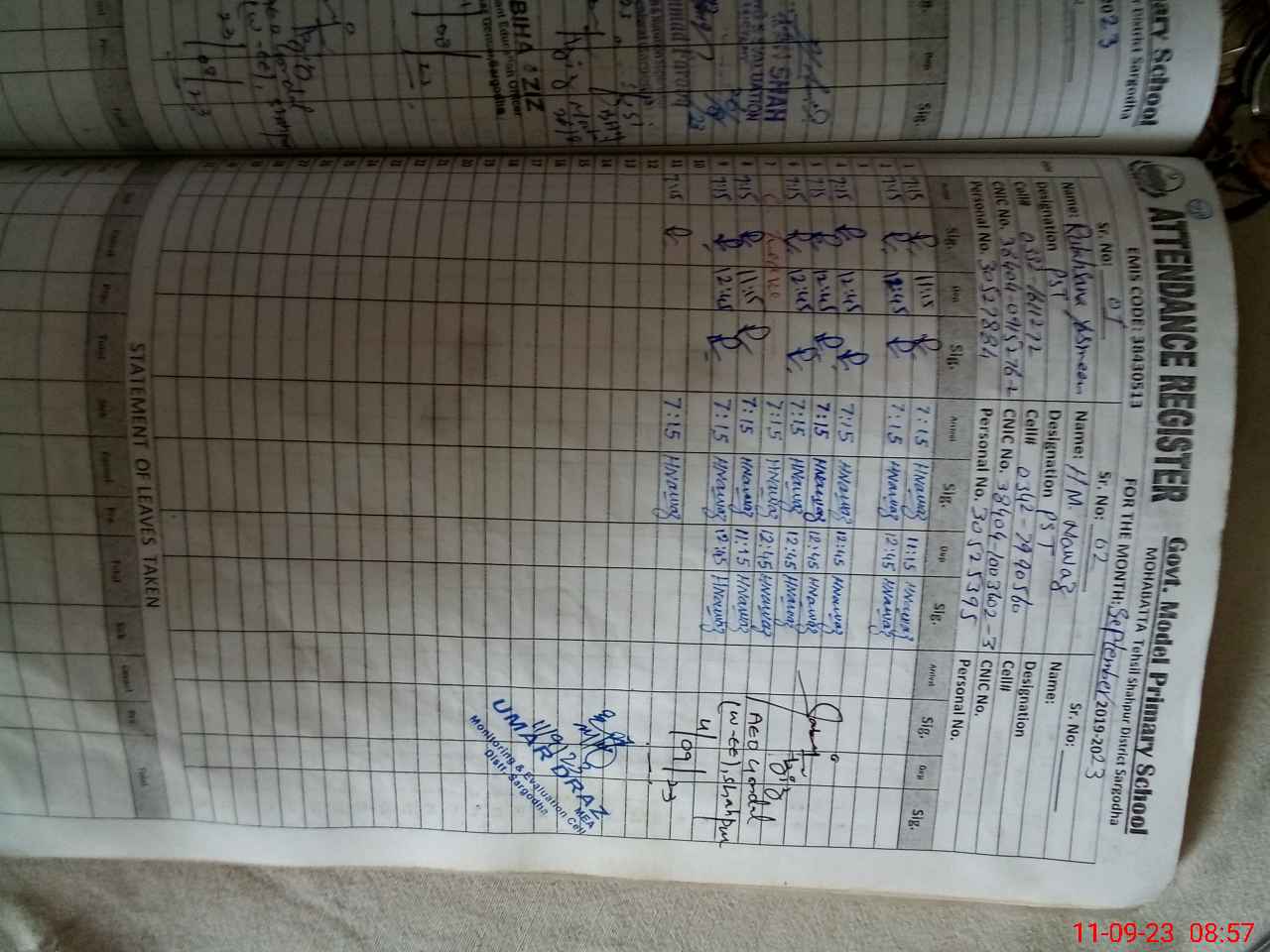 | Name: MU**** NA**** Designation: (School Headmaster's/Headmistress's) PST Phone/Cell Number: 03**** |