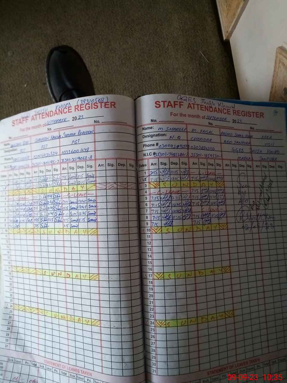 | CNIC | Full Name | Designation | R/C | Absence during last cal. month |
