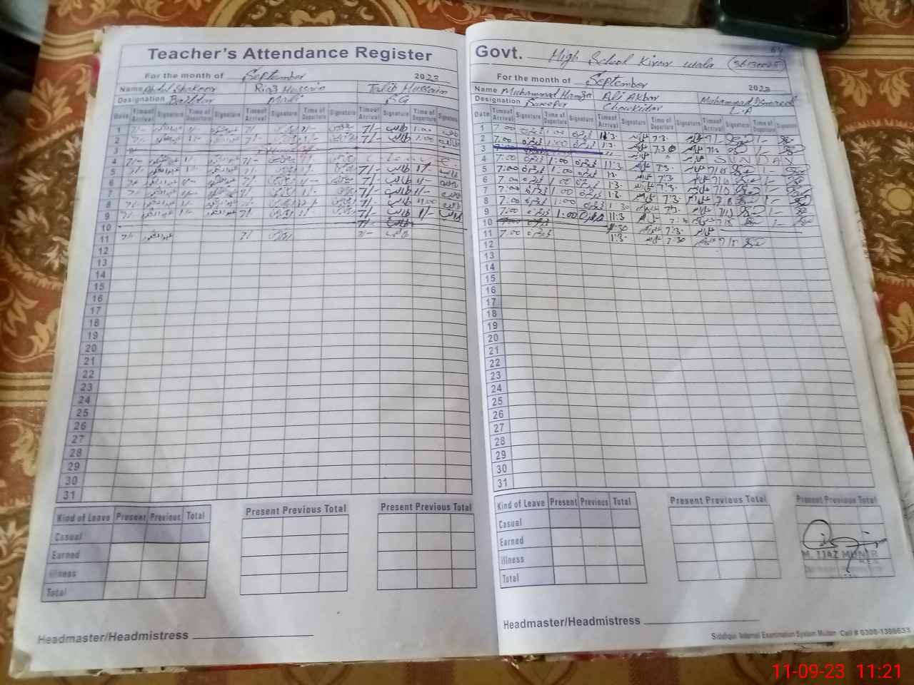 | Name: Mu**** UrRe**** Designation: (School Headmaster's/Headmistress's) Incharge HEADMASTER Phone/Cell Number: 03**** |