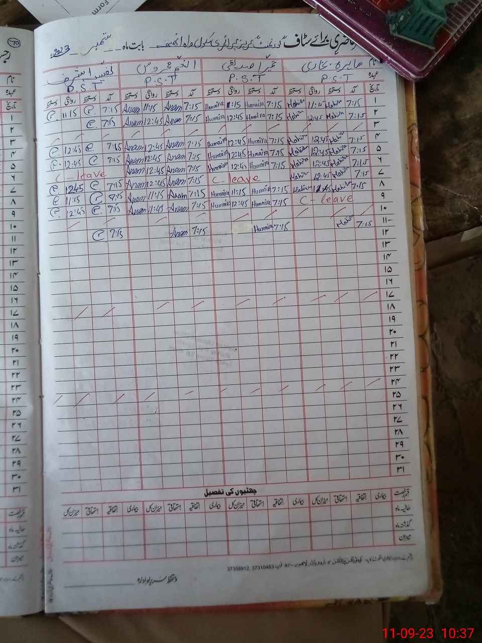| Name: Ma**** Bu**** Designation: (School Headmaster's/Headmistress's) P S T Phone/Cell Number: 03**** |