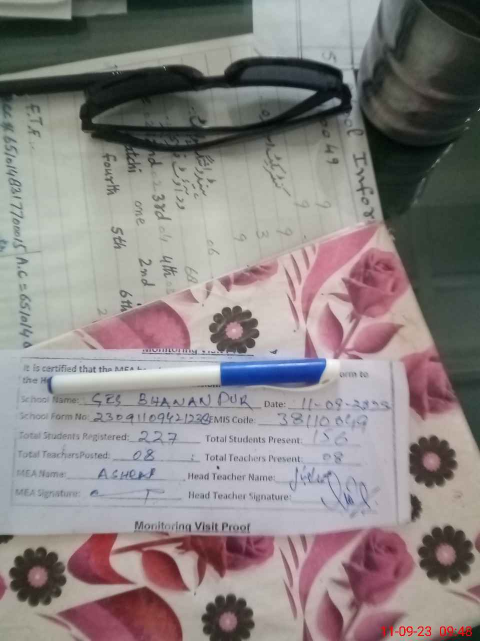 | Attendance Register | Head Teacher | MEA with School | Visit Proof |
