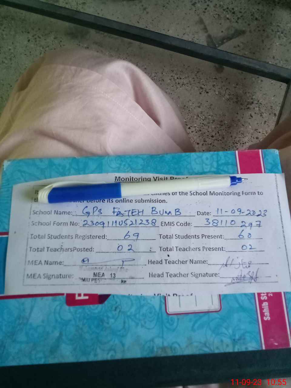 | Attendance Register | Head Teacher | MEA with School | Visit Proof |