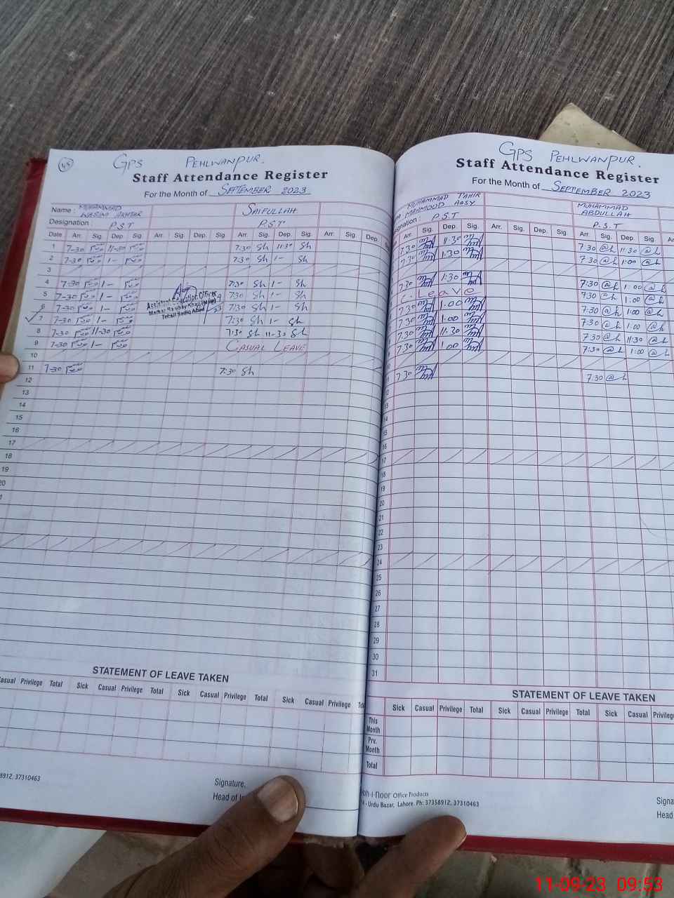 | CNIC | Full Name | Designation | R/C | Absence During Last Calender Month |