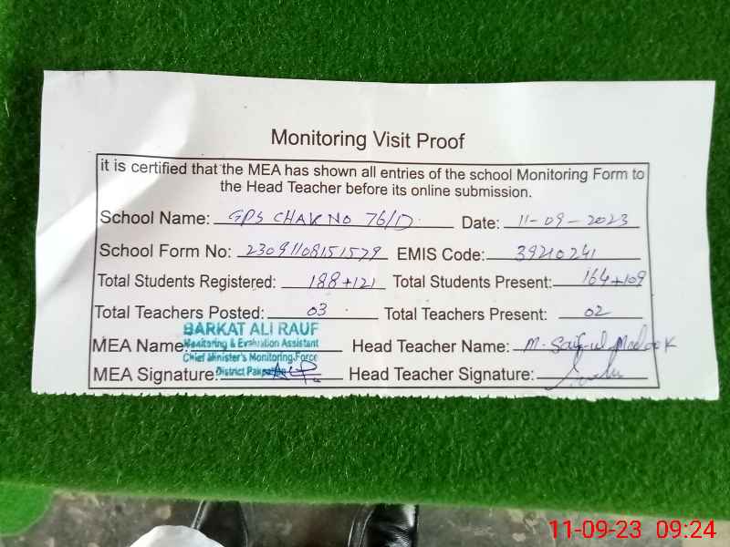 | EMIS Code: 39210241 | Name of School: GPS CHAK NO. 76/D | |||