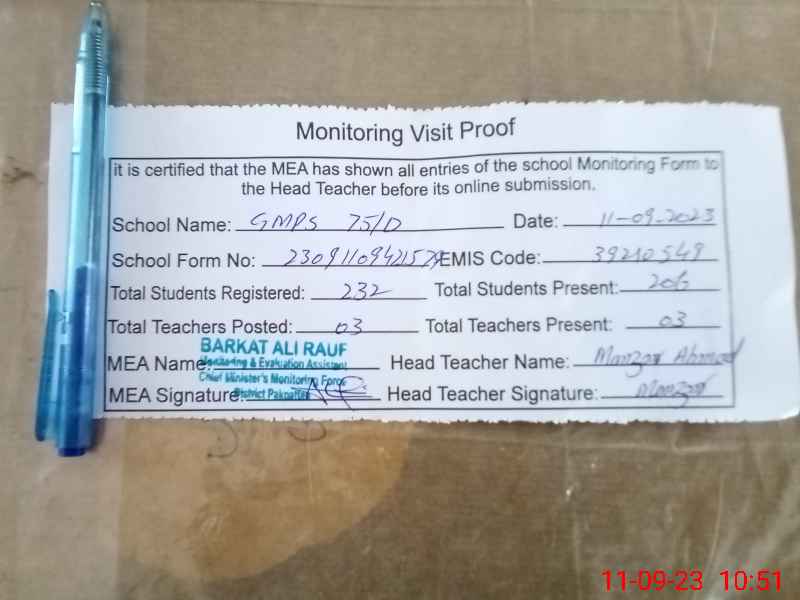 | EMIS Code: 39210549 | Name of School: GMPS 75/D | |||