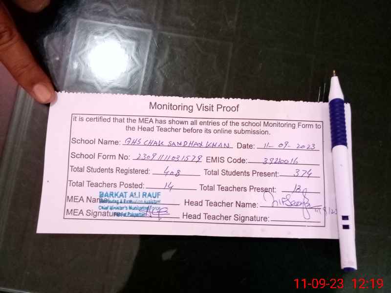 | EMIS Code: 39210016 | Name of School: GHS CHAK SANDHAY KHAN | |||