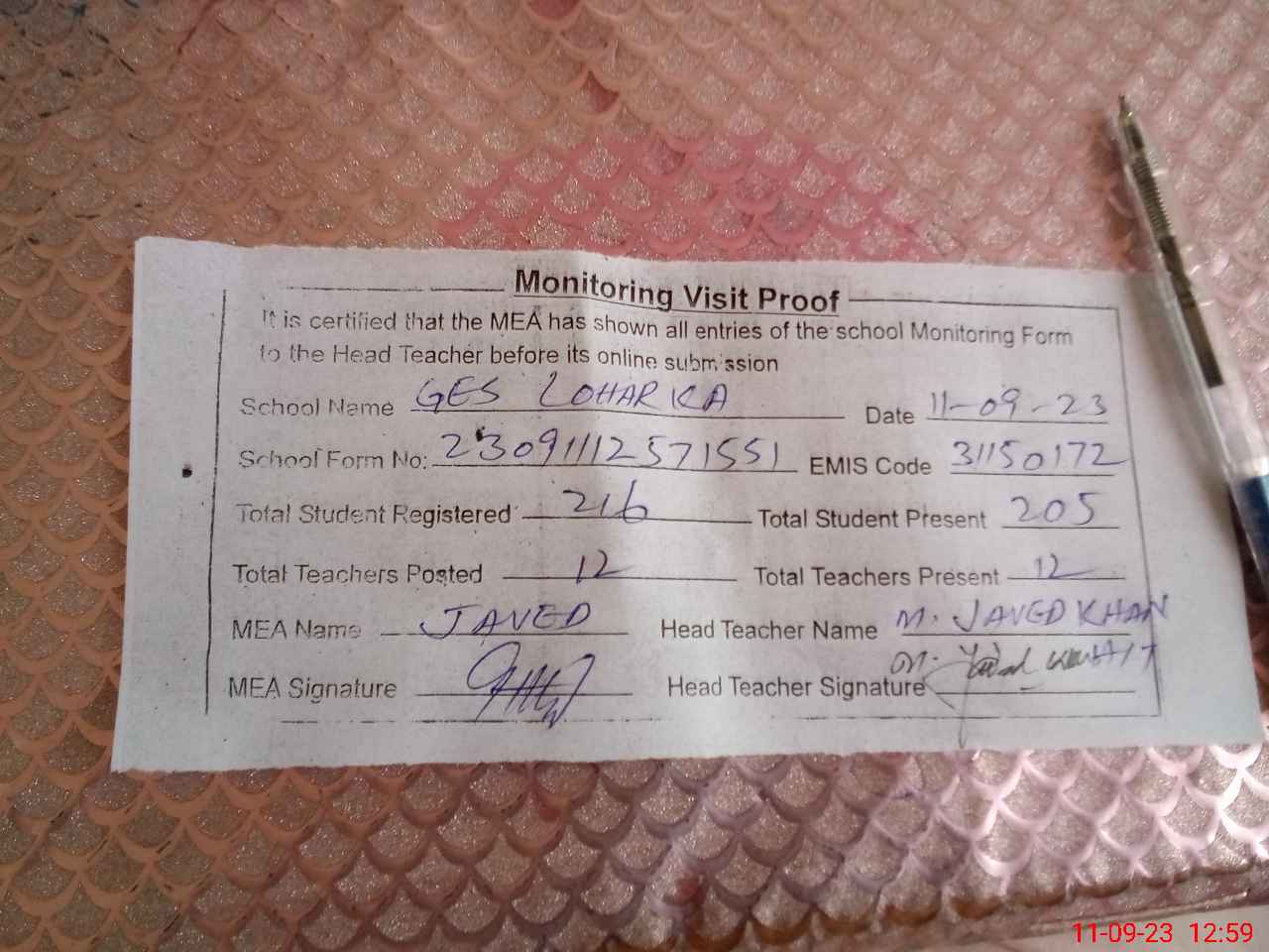| EMIS Code: 31150172 | Name of School: GHS LOHARKA | |||