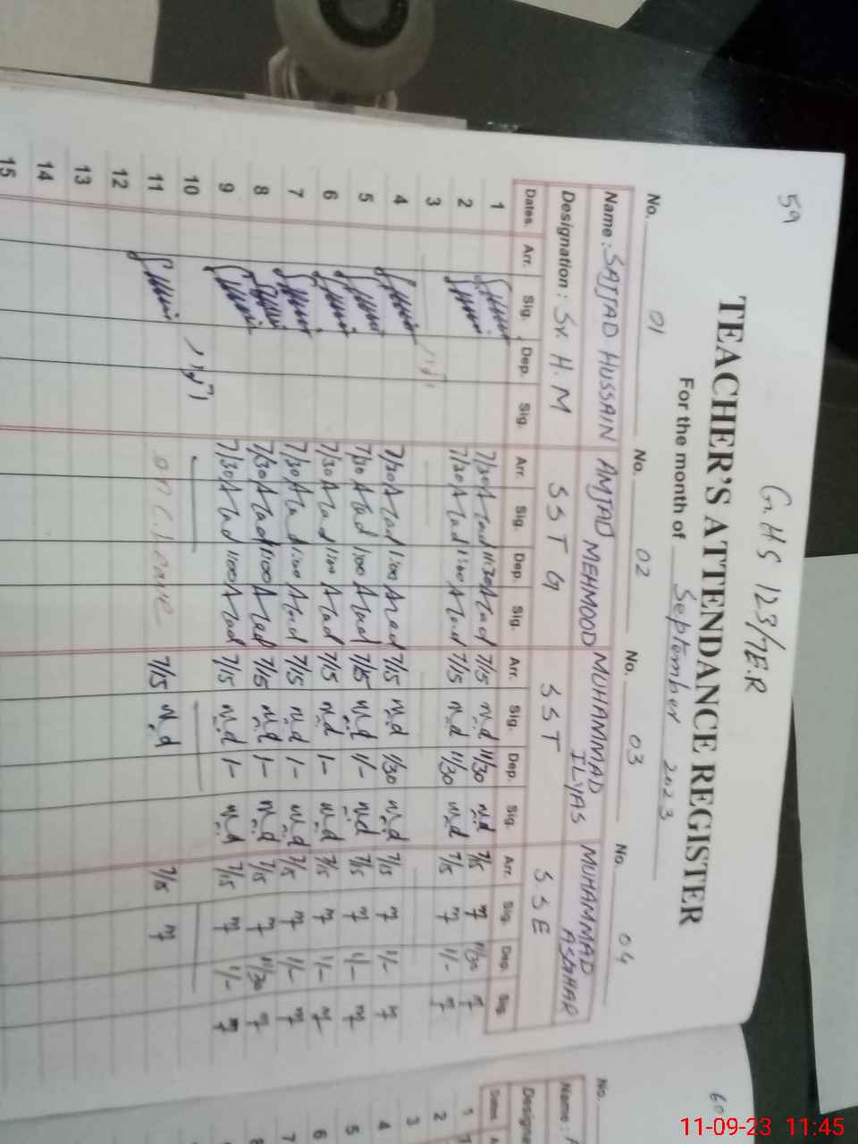 | Name: SA**** HU**** Designation: (School Headmaster's/Headmistress's) SR HEADMASTER Phone/Cell Number: 03**** |
