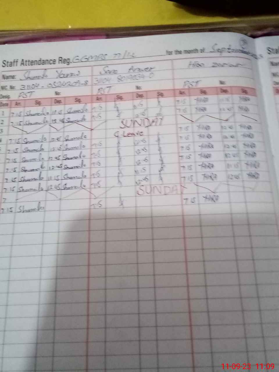 | CNIC | Full Name | Designation | R/C | Absence During Last Calender Month |
