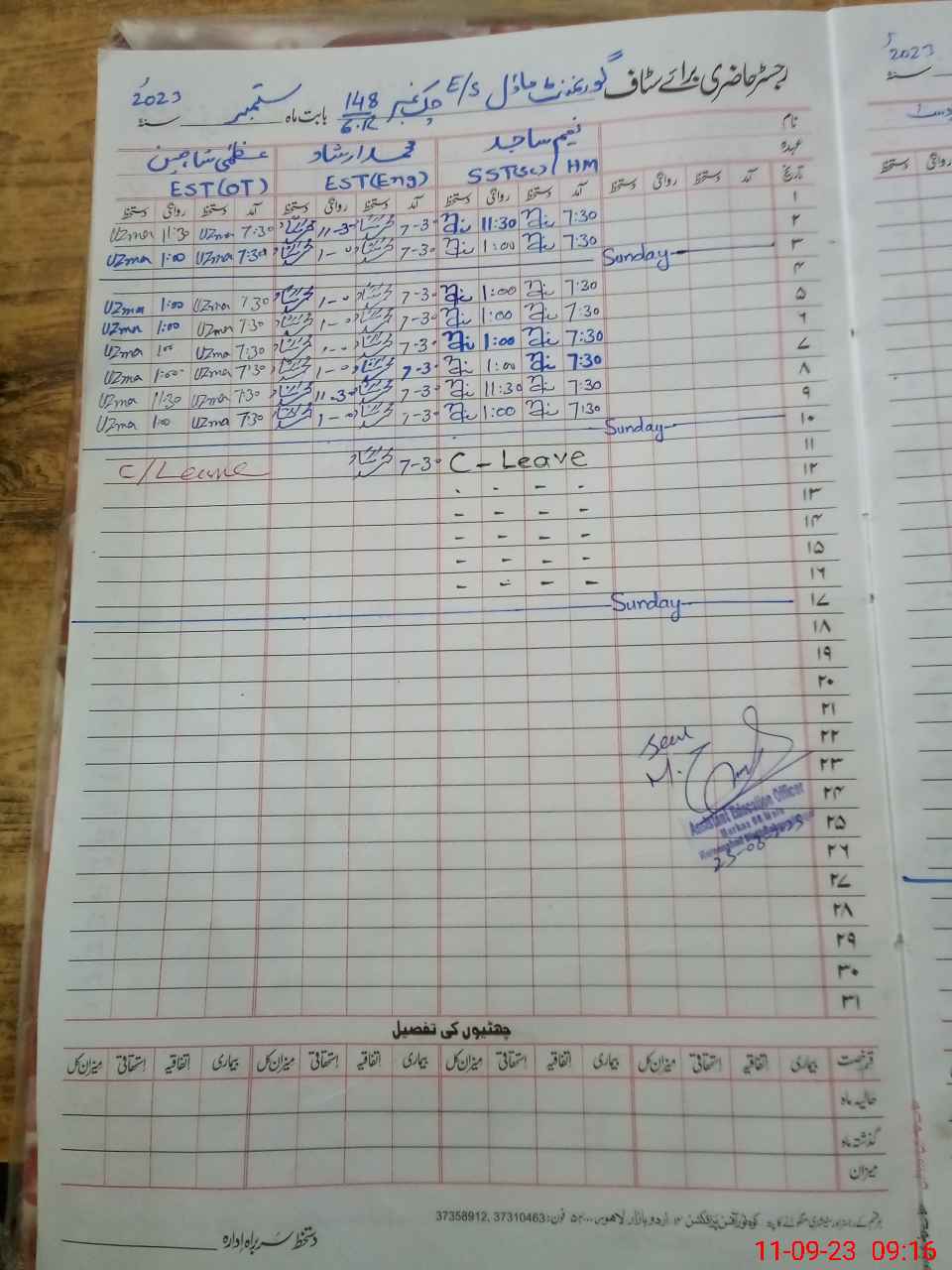 | Name: NA**** SA**** Designation: (School Headmaster's/Headmistress's) SST ( G) Phone/Cell Number: 03**** |
