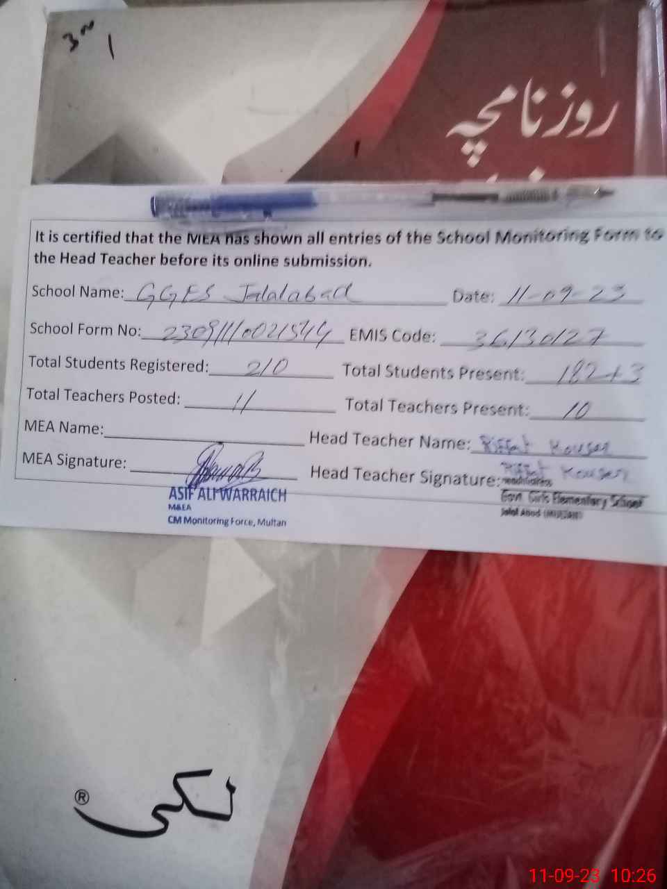 | EMIS Code: 36130127 | Name of School: GGES JALALABAD | |||