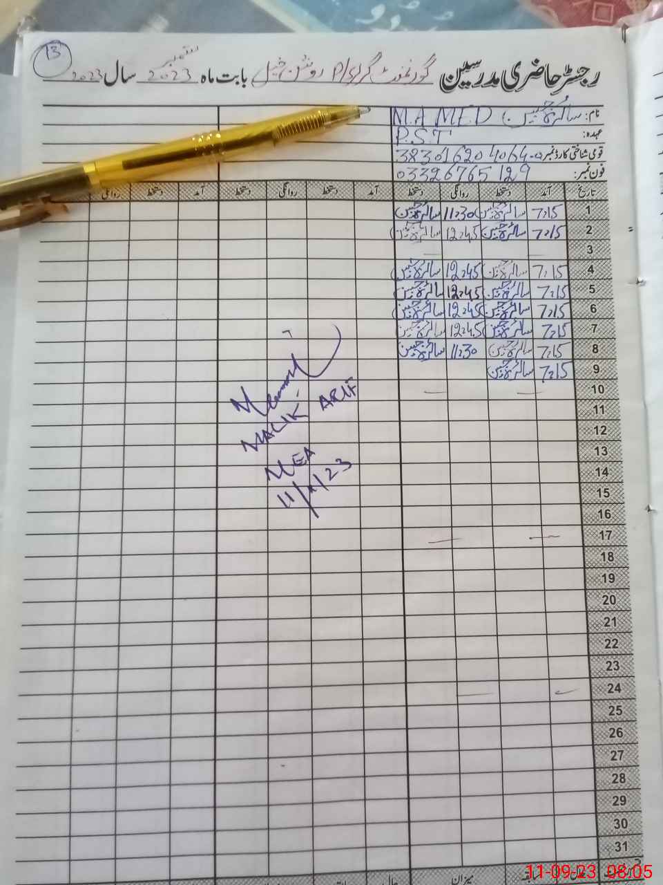| Name: SA**** BI**** Designation: (School Headmaster's/Headmistress's) PST Phone/Cell Number: 03**** |