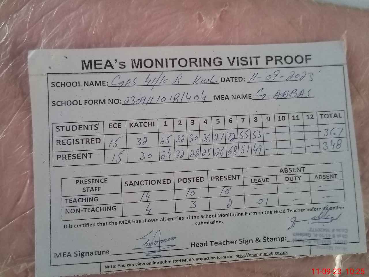 | EMIS Code: 36420172 | Name of School: GES 41/10-R QADEEM, KHANEWAL | |||
