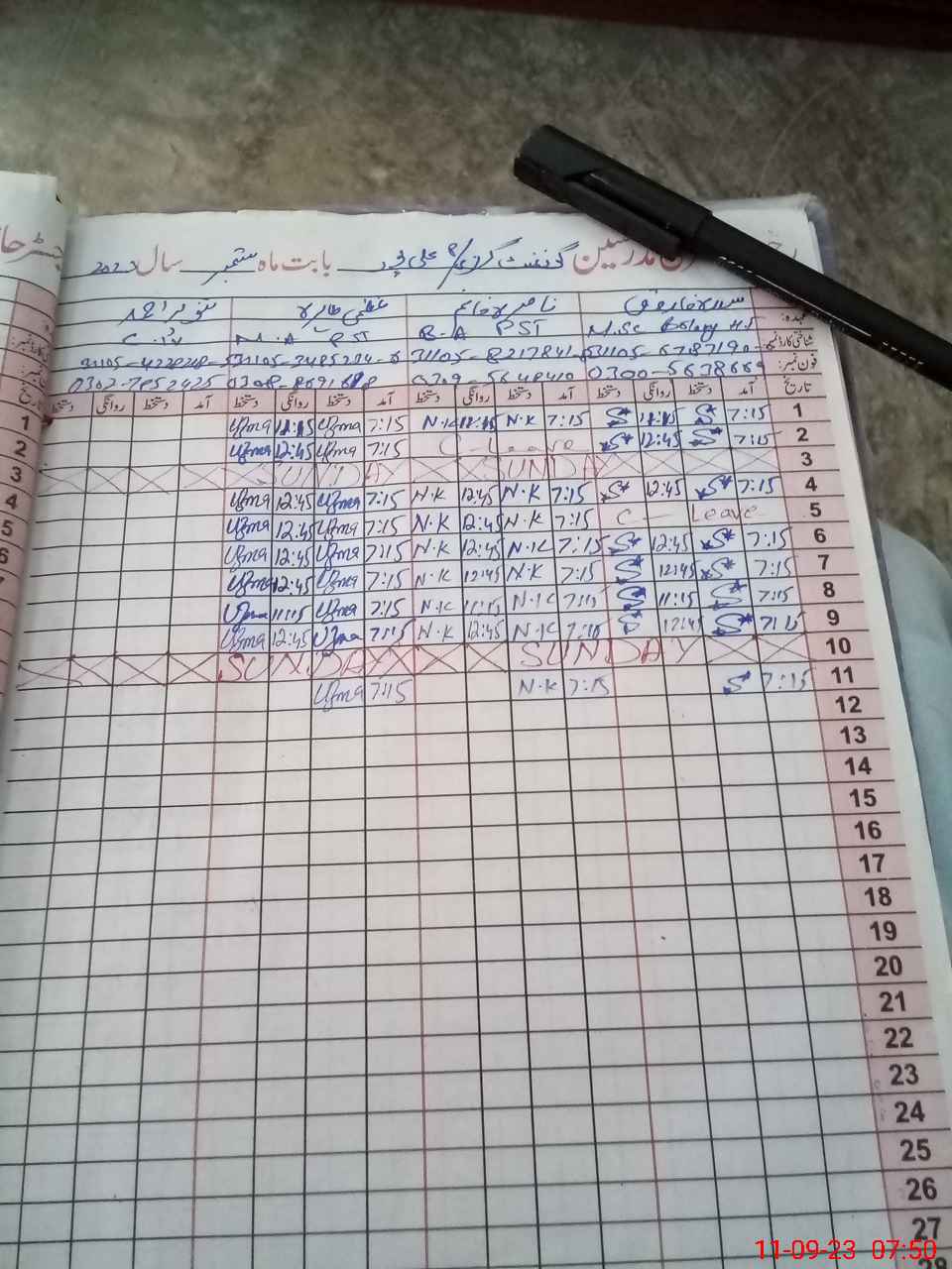 | CNIC | Full Name | Designation | R/C | Absence During Last Calender Month |