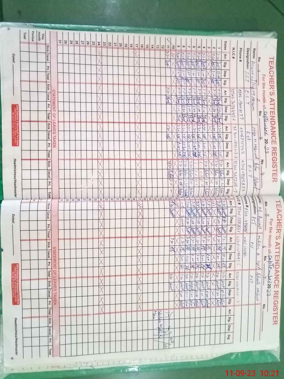 | CNIC | Full Name | Designation | R/C | Absence During Last Calender Month |