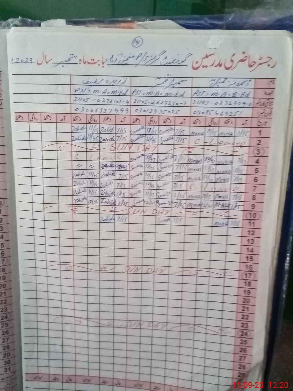 | Name: Sh**** Pe**** Designation: (School Headmaster's/Headmistress's) PST Phone/Cell Number: 03**** |