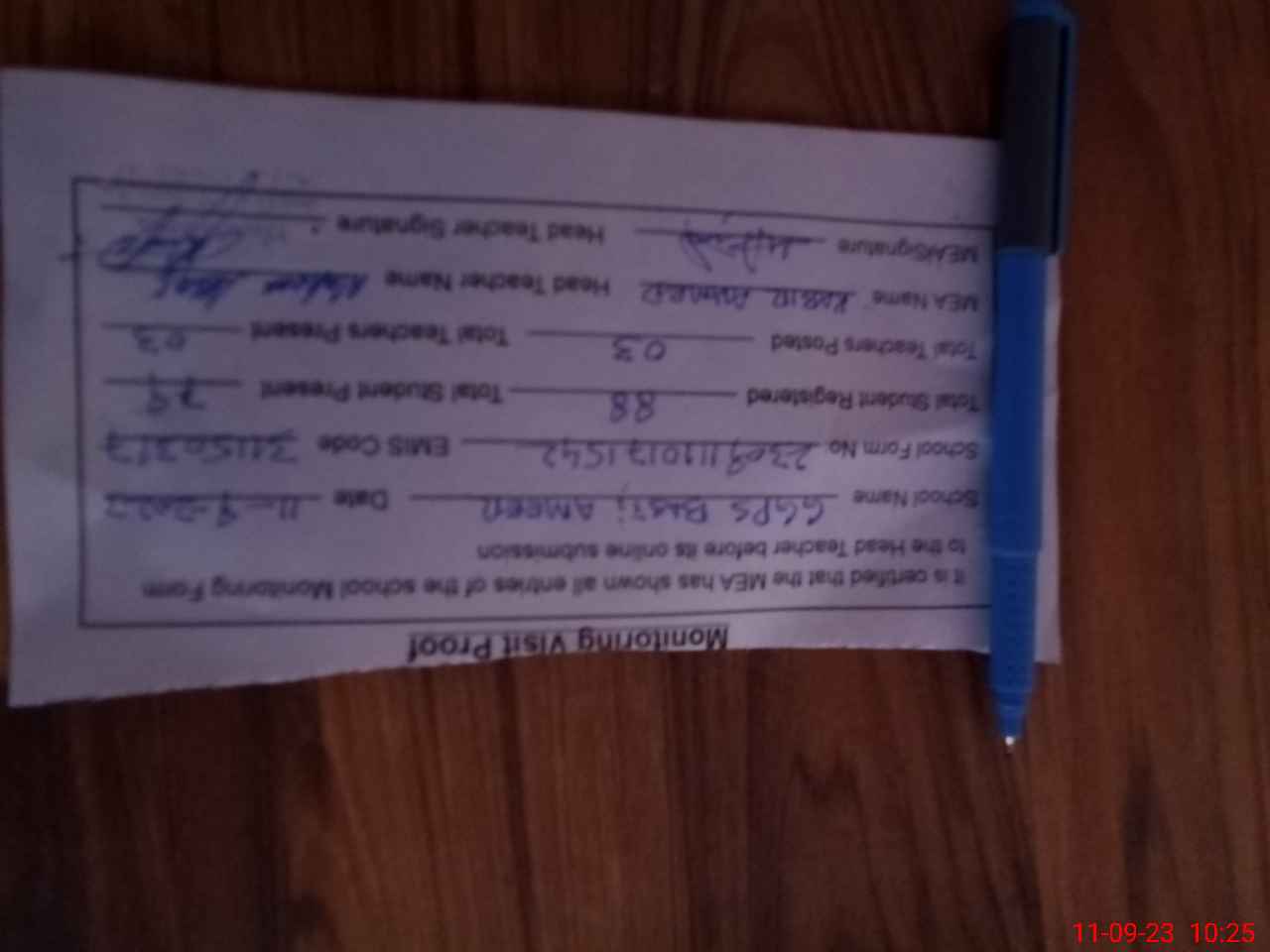 | Certified that this School was Inspected by the Undersigned MEA/DMO Today and the Information Stated Above is as Per Record. | |||||
