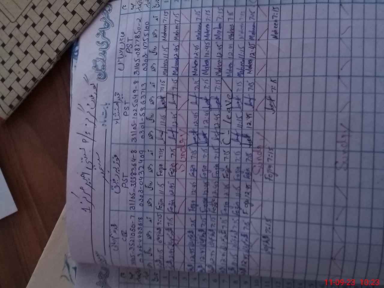 | CNIC | Full Name | Designation | R/C | Absence During Last Calender Month |