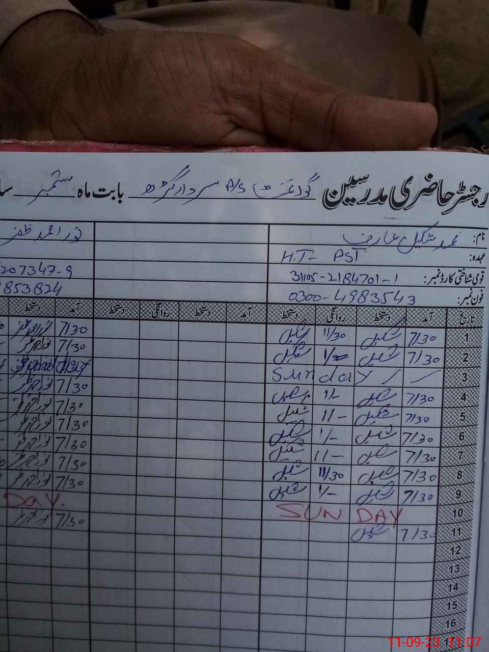 | Name: MU**** Sh**** Designation: (School Headmaster's/Headmistress's) PST Phone/Cell Number: 03**** |