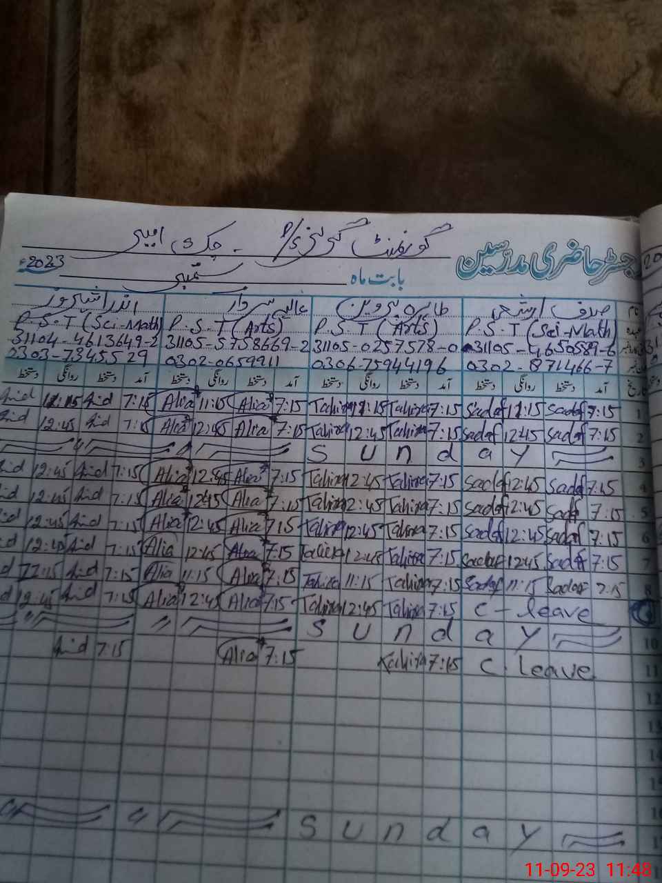 | Name: SA**** AR**** Designation: (School Headmaster's/Headmistress's) PST Phone/Cell Number: 03**** |