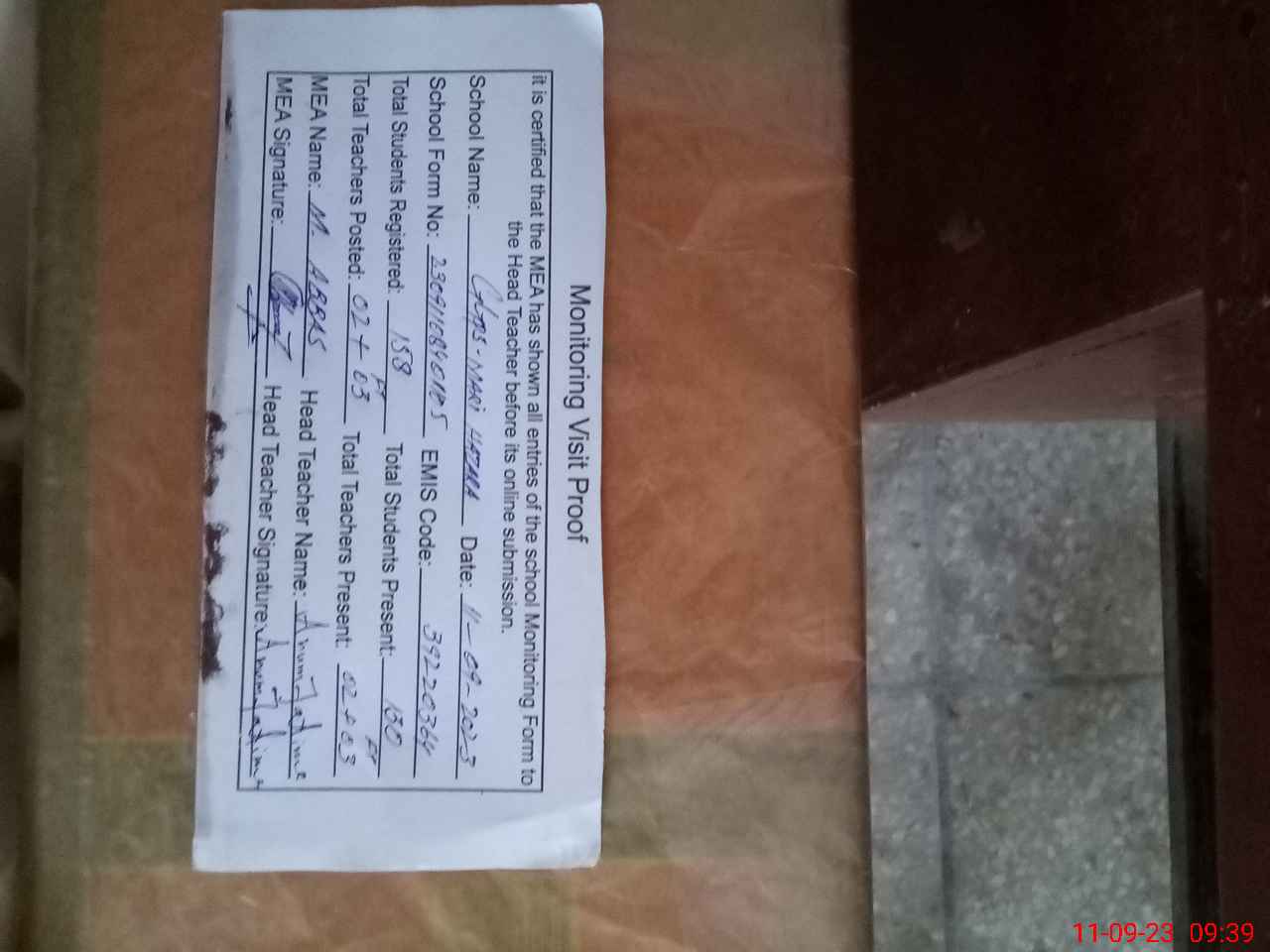 | Certified that this School was Inspected by the Undersigned MEA/DMO Today and the Information Stated Above is as Per Record. | |||||