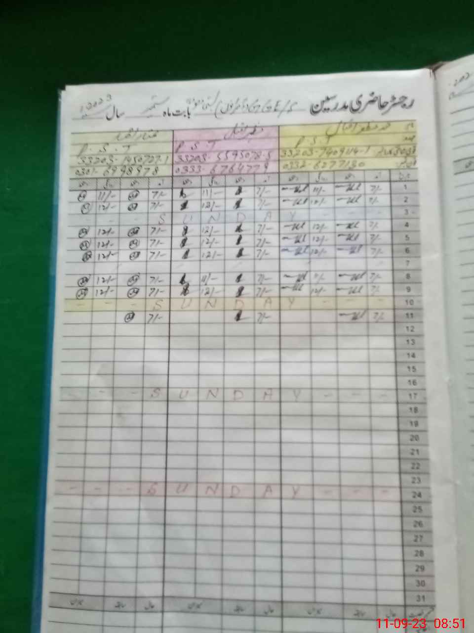 | CNIC | Full Name | Designation | R/C | Absence During Last Calender Month |