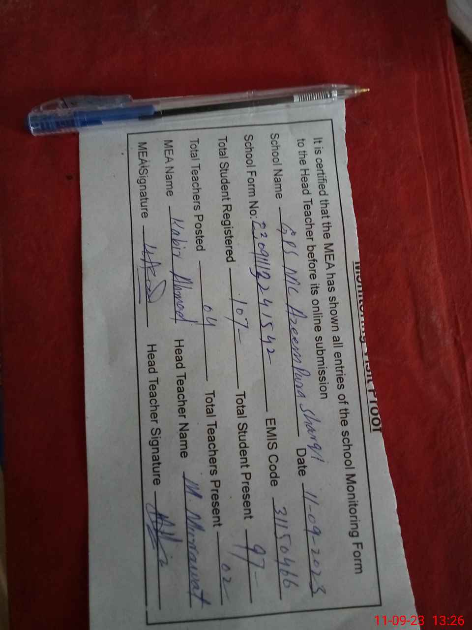 | Certified that this School was Inspected by the Undersigned MEA/DMO Today and the Information Stated Above is as Per Record. | |||||